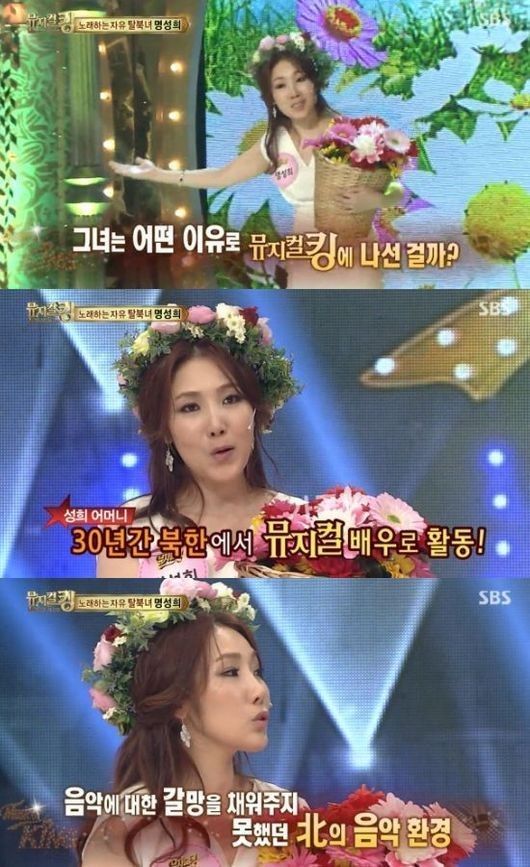 이날 명성희 씨는 ‘뮤지컬 킹’에 도전했다. 10년 전 북한 평양에서 왔다는 독특한 이력을 소개하며 음악에 대한 갈망을 드러냈다.