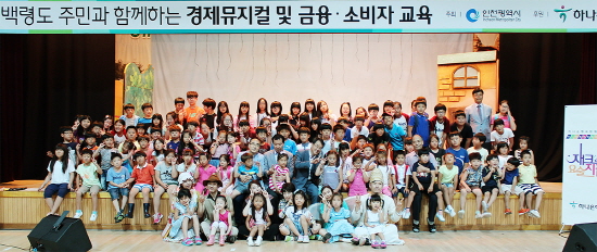 하나은행은 22일에 백령초등학교와 북포초등학교 어린이들을 대상으로 어린이 경제뮤지컬을 선보였다.