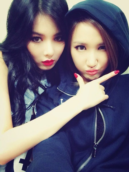 걸그룹 포미닛 멤버 현아와 EXID 멤버 LE의 인증샷이 화제다.