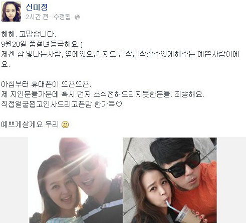 | ▲ 심현보 신미정 결혼/사진=신미정 트위터 | ||