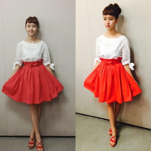 사진 속 김소현은 하얀 블라우스와 빨간 스커트를 입고 있다. 특히 김소현 특유의 청순한 미소와 무표정한 모습이 함께 공개돼 눈길을 끌고 있다.