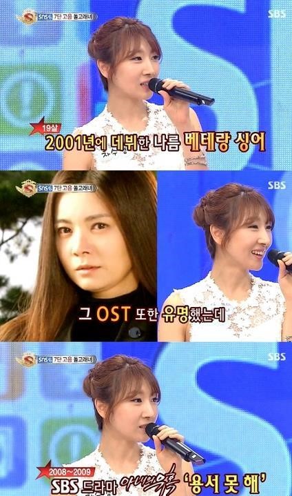 이날 차수경은 “2001년 19살 때 데뷔해서 앨범을 냈다”며 “SBS 드라마 ‘아내의 유혹’의 OST ‘용서 못해’를 불렀다”고 말했다.