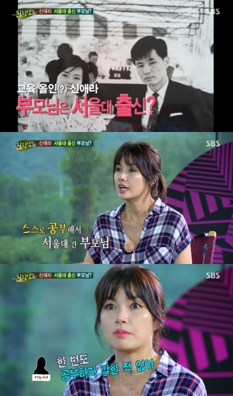 이날 신애라는 부모님이 모두 서울대 출신이 맞느냐는 MC들의 질문에 “두 분 다 서울대 출신”이라고 대답했다.