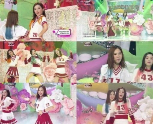 이날 ‘뮤직뱅크’에서 레드벨벳은 교복과 치어리더 의상을 연상시키는 붉은 플레어스커트 차림으로 상큼 발랄한 퍼포먼스를 펼쳤다.