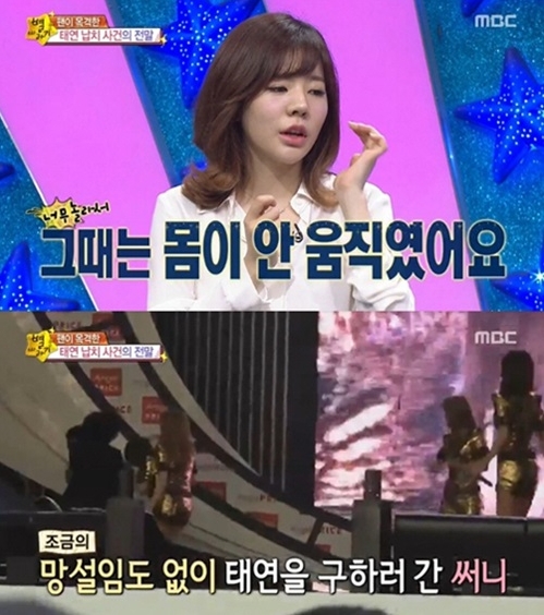 써니의 팬은 이날 방송에서 '태연납치 사건'과 관려해 "그때 가장 처음 그 상황을 인지하고 움직인 사람이 써니였다"고 말했다.