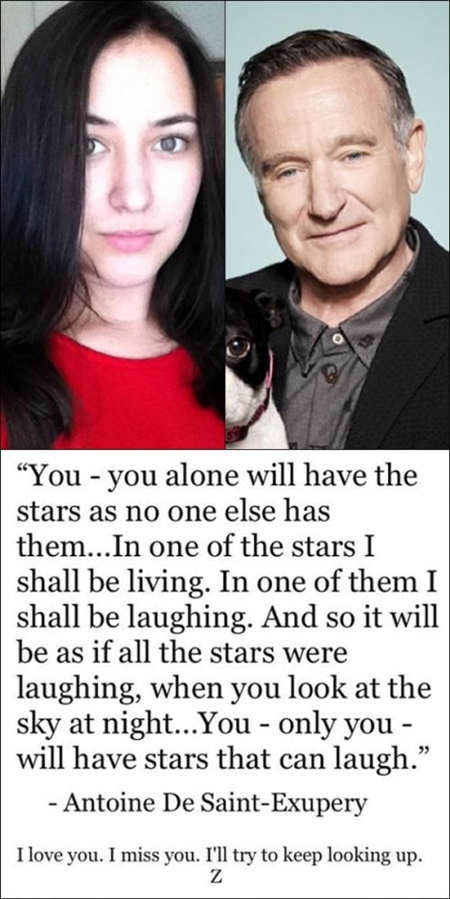11일 (현지시간) 로빈 윌리엄스의 자살 소식이 전해진 가운데 그의 딸 젤다 윌리엄스가 자신의 인스타그램을 통해 아버지에게 전하는 편지의 글을 게재했다.