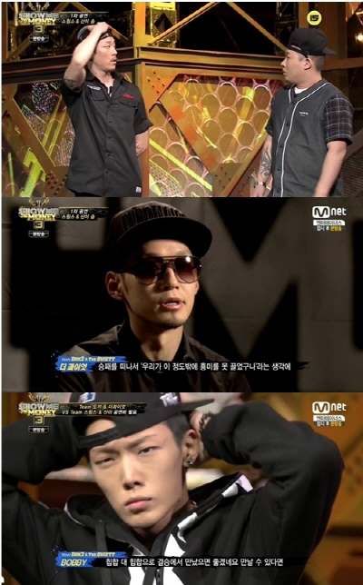 14일 밤 방송된 케이블채널 Mnet '쇼미더머니3' 7회에서는 도끼-더 콰이엇 팀과 스윙스-산이 팀의 대결 결과가 공개됐다.