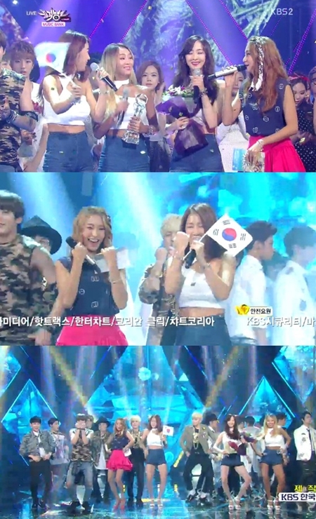 씨스타, 뮤직뱅크 3주 연속 1위…“우리 모두 태극기 달아요” 개념 공약 ‘눈길’