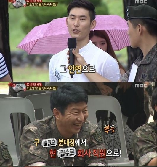설민호는 청룡대대 분대장으로 현재는 전역을 한 상태. 설민호는 “김수로 상병을 만나러 왔다”고 밝히며 “군복무 할 때 마지막 휴가 때 인생의 조언을 구했었다. 그 인연이 여기까지 이어졌다. 지금 김수로 회사의 직원으로 일하고 있다”고 전했다.
