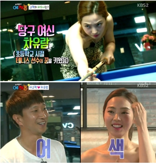 하지만 차유람의 파트너는 이규혁으로 선정됐고, 이규혁은 웃음을 감추지 못했다. 당구장에서 만난 이규혁과 차유람은 수줍게 인사를 나웠다. 이규혁이 "제가 테니스를 잘못한다"고 겸손해하자 차유람은 "운동선수였으니까 잘하실 것 같다"라고 치켜세웠다.