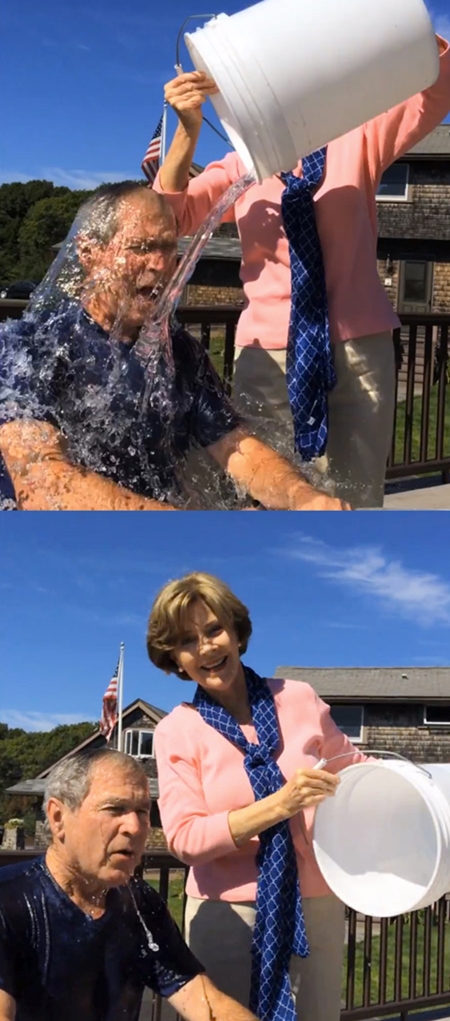아이스버킷챌린지, 부시 전 미국 대통령도 얼음물 세례…로라 여사 ‘방긋~’