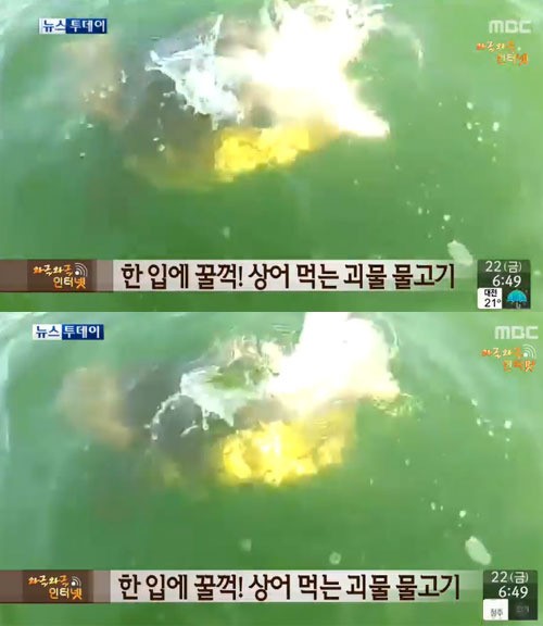 지난 20일 미국 허핑턴포스트에 따르면 최근 플로리다주 보니타 스프링스 해안에서 대형 물고기 골리앗 그루퍼(Goliath Grouper)가 상어를 낚아채는 순간이 포착됐다.