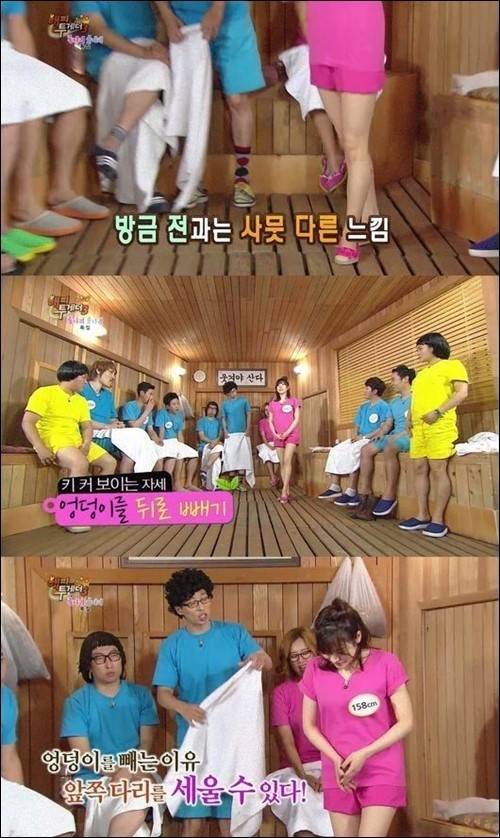 써니는 입고 있는 반바지를 접어 올리며 “하이힐을 신지 않고 엉덩이를 뒤로 뺀 채 하의는 짧게, 상의는 기게 입으면 자세만으로도 키가 커 보인다”며 비법을 전수했다.