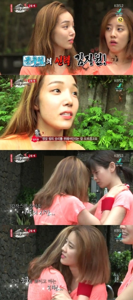 이에 김지원은 자신의 이름이 호명되자 아쉬운 표정을 감추지 못했다. 김지원과 가장 친했던 정가은은 눈물까지 흘리며 김지원의 팀 이동을 속상해했다.