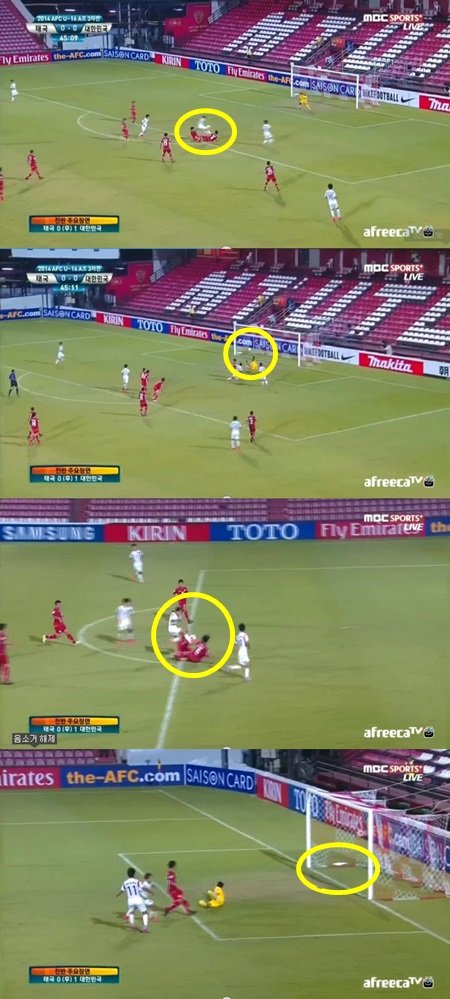 이승우는 전반 종료 직전 장결희와 패스를 주고 받은 이승우는 아크 정면에서 상대 수비수 2명을 제친 뒤 오른발 슈팅으로 태국 골망을 흔들었다.