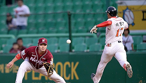 물 오른 1번타자 이명기의 연속 안타 행진은 28경기에서 멈췄다. 이명기는 이날 4번의 타격 기회를 모두 살리지 못했다.