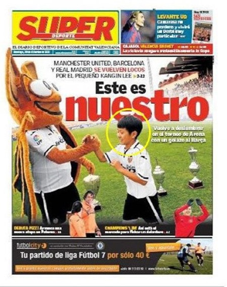 스페인 프로축구 발렌시아 구단의 유소년팀 소속 이강인이 현지 지역 스포츠지 1면을 장식했다.
