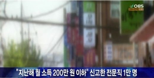 | ▲ 월소득 200만원 이하 전문직 1만여명/사진=방송화면 캡처 | ||