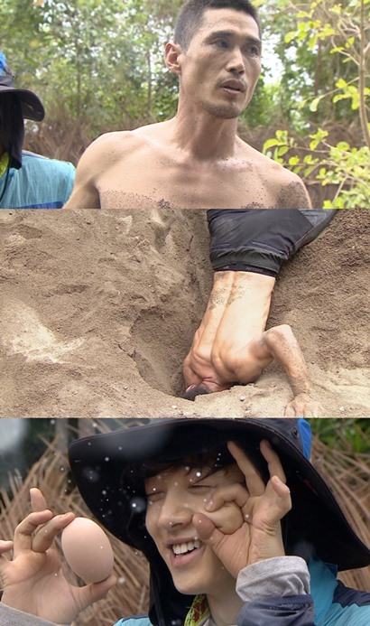 결국 정두홍은 1시간 넘도록 모래와 사투를 벌인 끝에 온몸이 거꾸로 파묻힐 지경에 이르러서야 겨우 메거포드 알 하나를 얻게 된다.