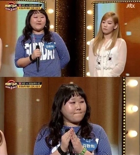 소녀시대 태연이 ‘히든싱어3’에서 태연이 탈락하고 얼굴 없는 태연 김환희가 우승했다.