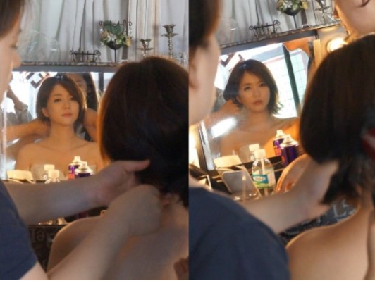 이날 공개된 사진 속에는 임지은이 웨딩촬영 당일 메이크업을 받고 있는 자연스러운 모습이 담겨 있다.