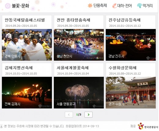 최근 한국관광공사는 가을 축제를 모아 정리한 표를 각종 포털사이트에 게재해 관광객의 관심을 끌었다.