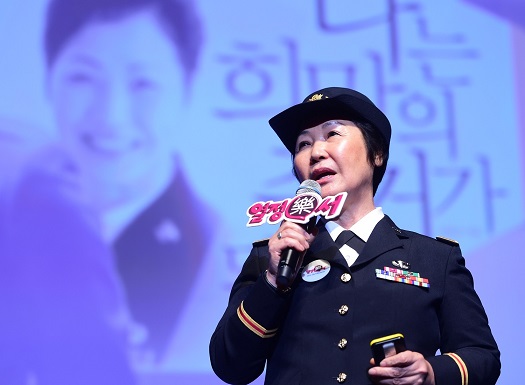 그녀는 "미군에는 ‘지역전문가’라는 게 있다. 어디서 살던 우리는 보이지 않는 장벽을 발견하게 된다. '너는 밑바닥 출신이니 여기까지만이다' 미군에도 이런 것이 있다. 지역전문가에 뽑힌다는 건, 군인외교관과 마찬가지"라며 "일본의 식민지였던 한국출신 여자를 지금 뽑겠나, 그런데 한국의 밑바닥에서부터 올라온 이 여자가 그 대단한 미군의 결정을 바꿨다"고 말했다.