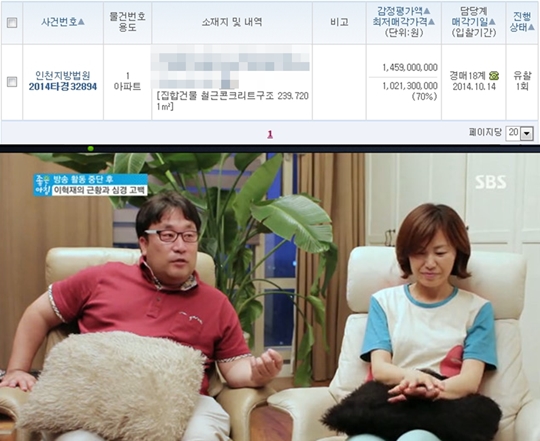 | ▲ 이혁재 아파트 경매/사진=SBS 방송화면 캡처 | ||