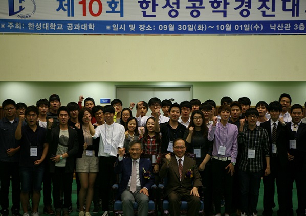 | ▲ 1일 서울 성북구 한성대에서 진행된 '제10회 한성공학경진대회'에서 대학 관계자 등이 기념사진을 촬영하고 있다. | ||