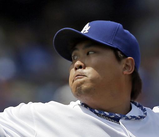 미국 메이저리그 LA다저스의 투수 류현진(27)이 4일 캘리포니아주 다저스스타디움에서 릭 허니컷 투수 코치가 지켜보는 가운데 볼펜 피칭을 소화했다.