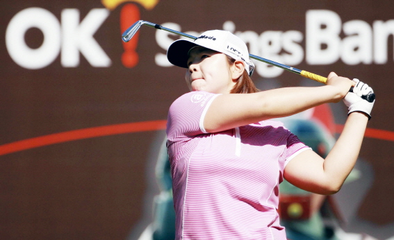 | ▲ 이민영이 5차례 연장전까지 가는 접전끝에 신예 김민선5를 누르고 OK SAVINGS 박세리인비테이셔널에서 우승컵을 차지했다. | ||