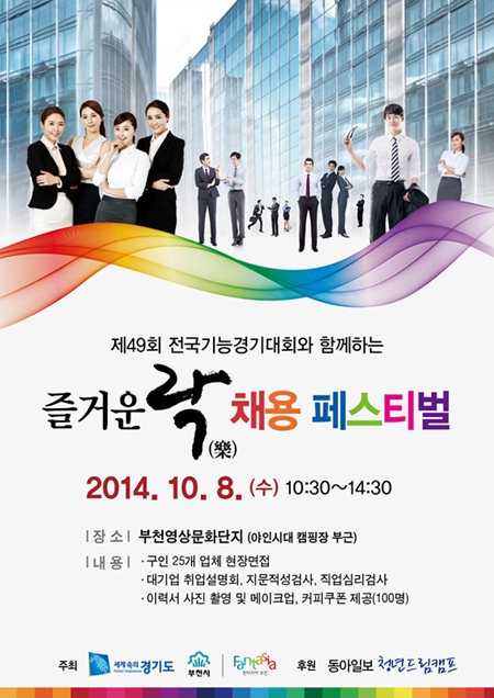 오는 8일 부천영상문화단지 야인시대 캠핑장에서 경기도와 부천시의 주최로 ‘즐거운 락(樂) 채용 페스티벌’이 개최된다.