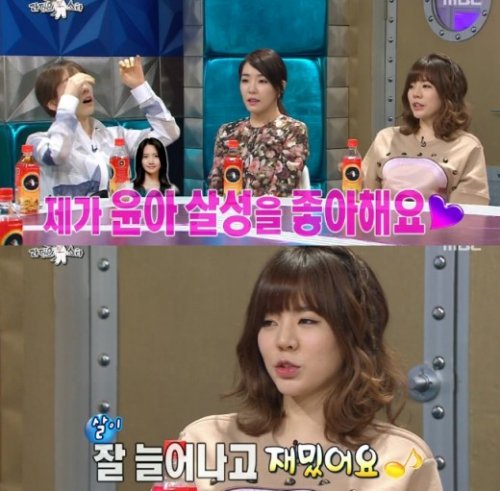 이에 써니는 “멤버 가운데 윤아의 살성을 가장 좋아한다. 윤아의 껍데기(피부)가 잘 늘어나서 재미있다”고 말해 웃음을 자아냈다.