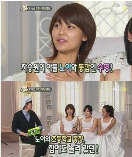 당시 수영은 "차노아가 초등학교 동창이다. 과거 차승원이 살던 집이 소녀시대의 숙소가 됐다"며 차노아에게 영상편지를 보냈다.