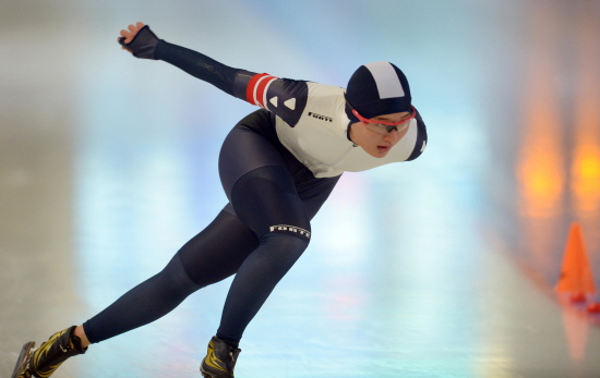 | ▲ 10일 오후 서울 노원구 공릉동의 태릉국제스케이트장에서 열린 스피드스케이팅 제1차 공인기록회에서 2014 소치 동계올림픽 2관왕을 차지했던 박승희가 1000m 종목에 출전해 힘차게 질주하고 있다. 박승희는 1차 공인기록회에서 1분20초40의 기록으로 여자 1000m 1위를 차지했다. | ||