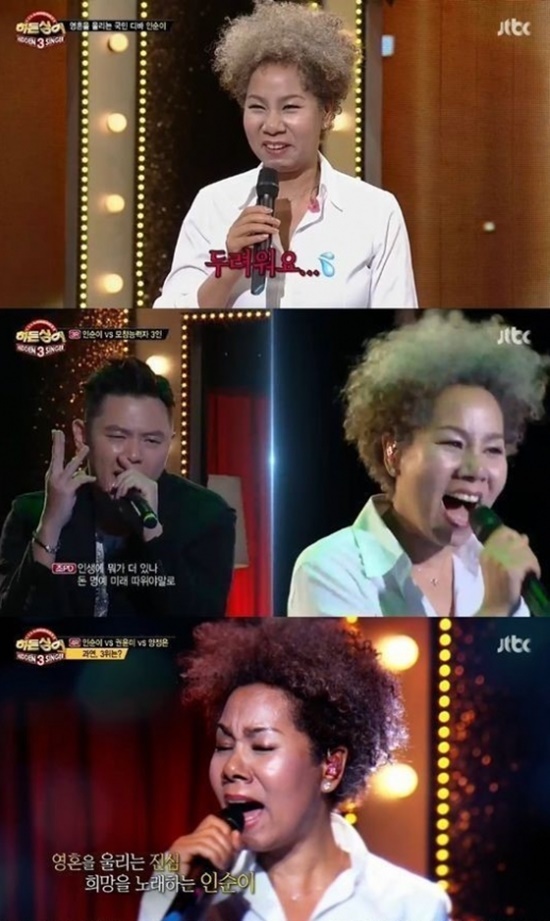 지난 11일 방송된 JTBC '숨은 가수 찾기-히든싱어3'(이하 히든싱어3) 9회에는 인순이 편으로 꾸며졌다.