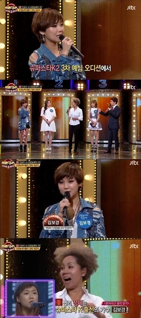 지난 11일 방송된 종합편성채널 JTBC 예능프로그램 ‘히든싱어 시즌3’ 인순이 편에서는 케이블채널 엠넷(Mnet) 예능프로그램 ‘슈퍼스타K’ 출신 가수 김보경이 모창가수로 등장해 인순이와의 인연을 고백했다.