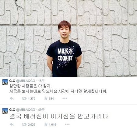 엠블랙 멤버 지오는 지난 13일 자신의 SNS를 통해 “결국 배려심이 이기심을 안고가리다”라는 글을 게재했다.