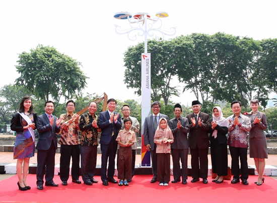 아시아나는 15일 인도네시아 자카르타 이스티크랄 사원에서 류광희 아시아나항공 여객본부장, 김병관 KOICA 소장, 헤르민 루시타(Hermien Roosita) 환경부 차관 등 관계자 10여명이 참석한 가운데 태양광 가로등 준공 행사를 가졌다.