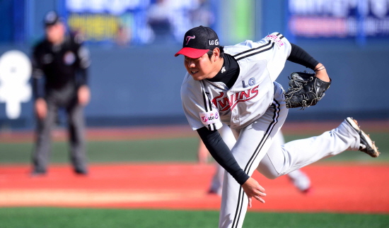 | ▲ 19일 오후 경남 창원 마산야구장에서 열린 2014 프로야구 준플레이오프 1차전 NC 다이노스와 LG 트윈스의 경기에서 1회말 LG 선발 류제국이 역투하고 있다. | ||