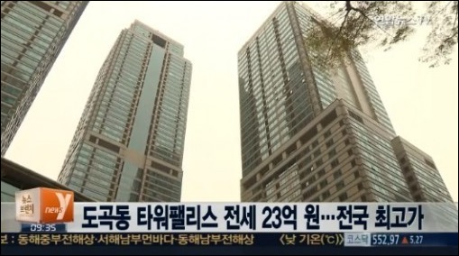 전국 최고가 전세, 도곡동 타워팰리스 23억원 '경악'...지방 1위는?