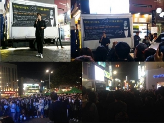 갑작스런 등장에도 100여명이 넘는 시민들이 순식간에 운집하며 그를 열렬히 환영했다. 특히 '나였으면'이 흐르자 시민들은 너나없이 후렴 부분을 따라 부르며 마치 팬미팅 현장에 온 듯 환호를 보냈다.