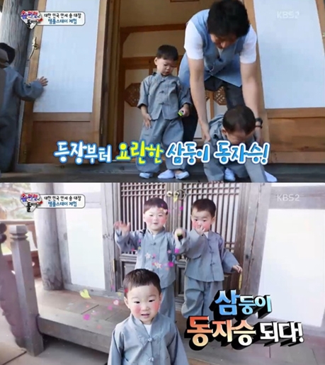 동자승이 된 삼둥이는 삼단분리가 되더니 조용한 산사를 휘젓고 다니며 천방지축 그 자체의 모습을 보여 시청자들의 웃음을 자아냈다.