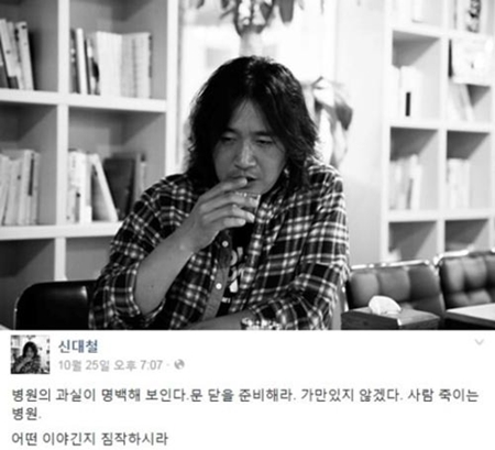 신대철은 지난 25일 자신의 페이스북을 통해 “병원의 과실이 명백해 보인다. 문 닫을 준비해라. 가만 있지 않겠다”라는 글을 올렸다.