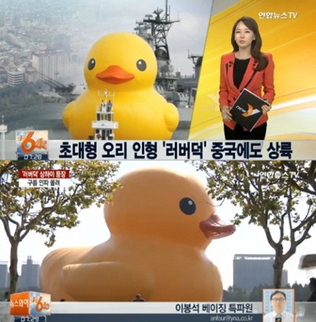| ▲ 러버덕 상하이 등장/사진=연합뉴스TV 캡처 | ||