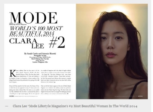 미국 저명한 패션 매거진 ‘모드’는 28일 ‘2014 세계에서 가장 아름다운 여성 100인’(Mode Lifestyle Magazine’s 100 Most Beautiful Women In The World 2014 List)을 발표했다.
