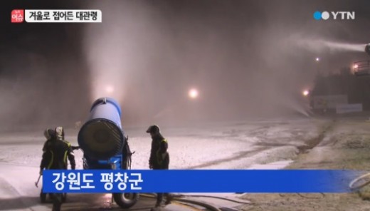 | ▲ 강원도 스키장 첫 인공제설/사진=방송화면 캡처 | ||