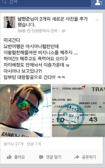 앞서 팝핀현준은 지난달 자신의 페이스북에 "미국 간다. 이번 여행은 아시아나 협찬인데 이왕 협찬해 줄거면 비즈니스를 해주지"라며 "하여간 해주고도 욕먹어요. 으이구 자리 배정도 안 해놔서 이층 가운데. 아시아나 보고 있나? 다음부터는 대한항공으로 간다"라는 글을 올려 논란을 일으켰다.