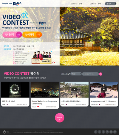 이번 공모전은 분량에 관계없이 "내가 생각하는 한국의 매력"을 재미있는 영상으로 제작해 유튜브에 업로드하고, 이벤트 웹페이지를 통해 응모하면 우수작에 500만원 상당 여행상품권, 호텔 숙박권, 빅뱅 광고 촬영의상, GoPro, 셀카봉 등을 증정하는 이벤트이다.