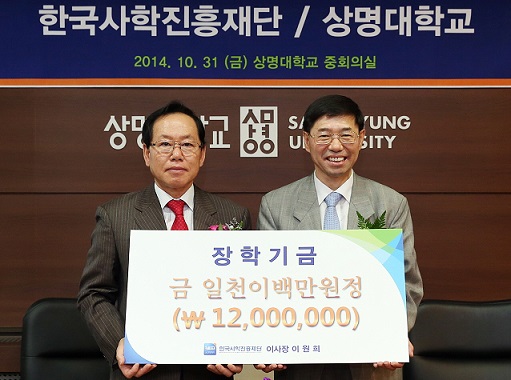 이번 장학기금은 상명대가 서울 홍제동 행복기숙사 운영에 협조한 공로를 인정받아 전달됐다.